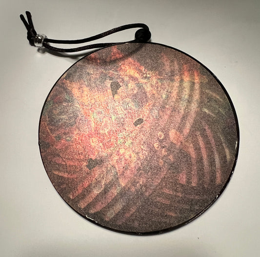 Acrylic Black Yarn Ball Suncatcher/Ornament with pink and blue stained glass backing