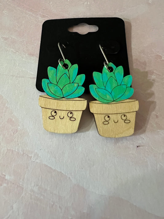 Wood Earrings - Succulents on Stainless Steel Ear wires - see item list for photos of colors