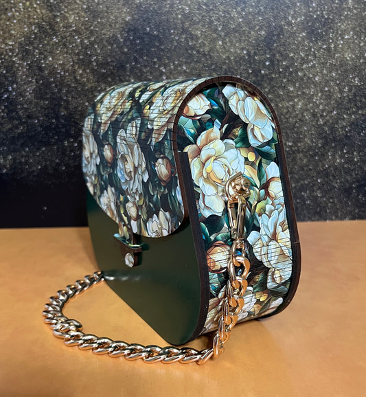 Special Occasion Purse - Sporran Style - White Floral with Green