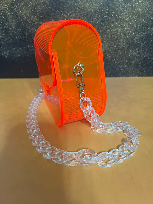 Special Occasion Purse - Sporran Style - See through neon pink/orange acrylic