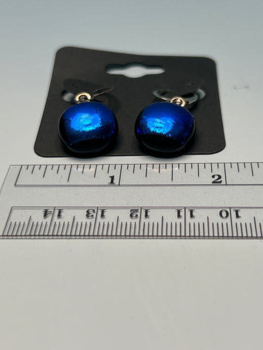 Fused Glass Earrings - Blue Mirror on gold tone lever back