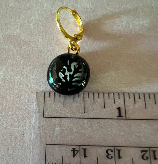 Fused Glass Earrings - Black with dichroic leaf design on gold tone lever back