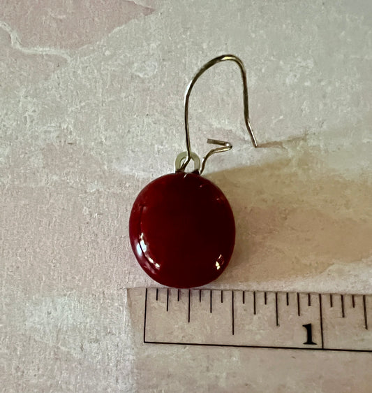 Fused Glass Earrings - Cherry red glass on silver kidney ear wires