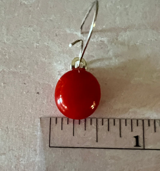 Fused Glass Earrings - Red orange glass small glass drop on silver kidney ear wires