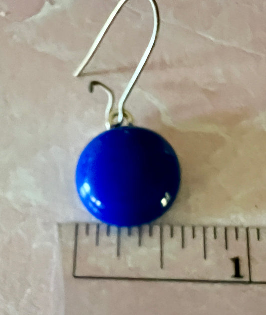 Fused Glass Earrings - Blue glass on silver kidney ear wires