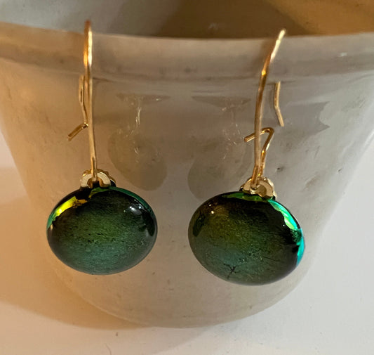 Fused Glass Earrings - Dichroic green