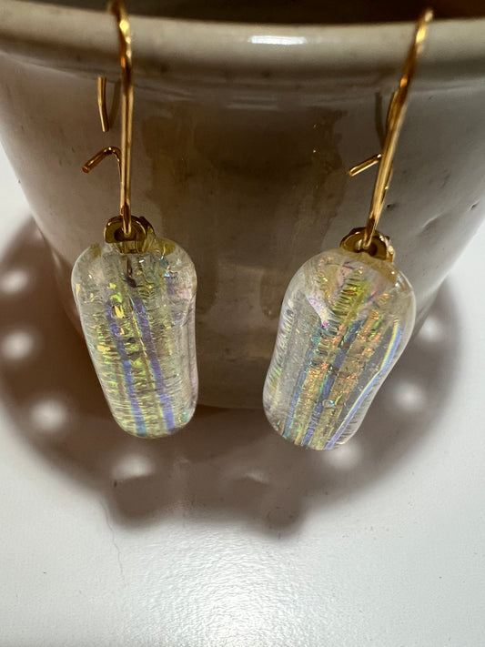 Fused Glass Earrings - Gold dichroic on clear glass