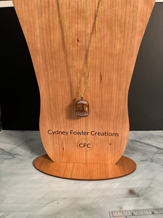 Fused Glass Pendant - light brown dichroic on gold tone chain