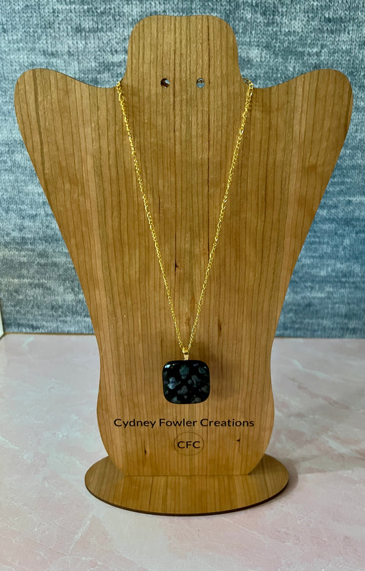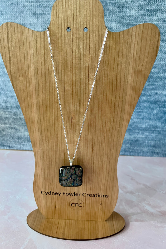Fused Glass Pendant -Dichroic Abstract Pattern - 1.5" square