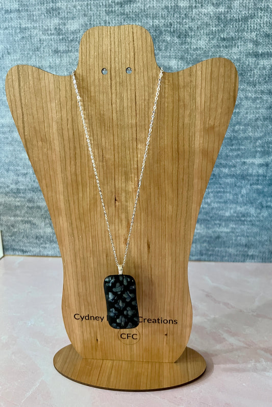 Fused Glass Pendant - Large statement piece on sterling silver chain 18"