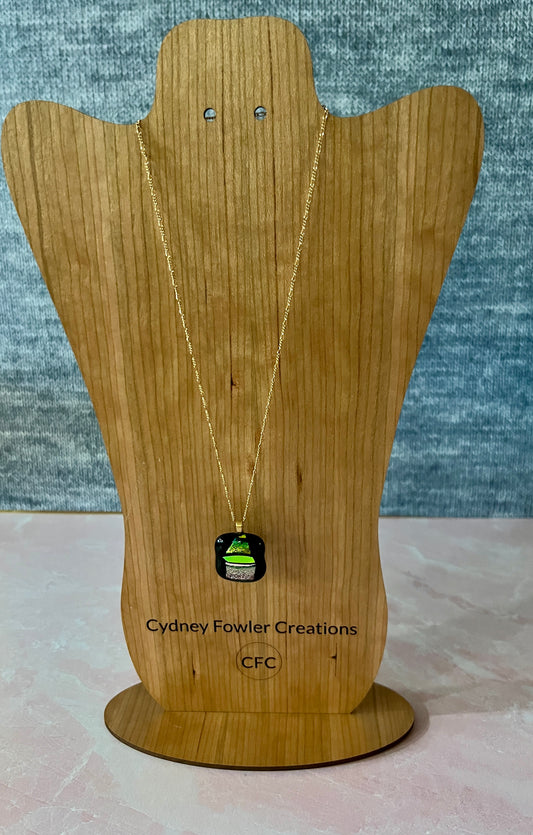 Fused Glass Pendant - green shades of dichroic with gold plated bail and chain