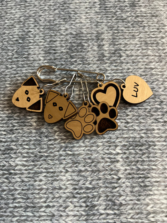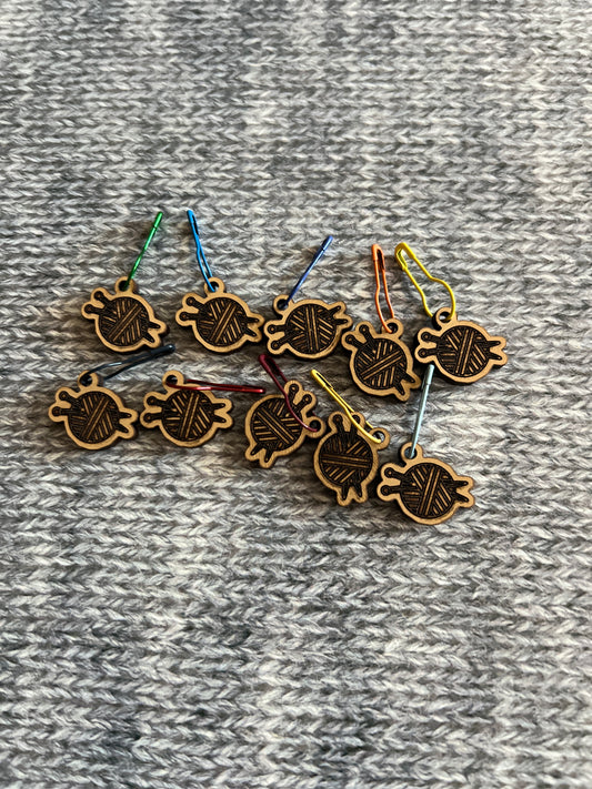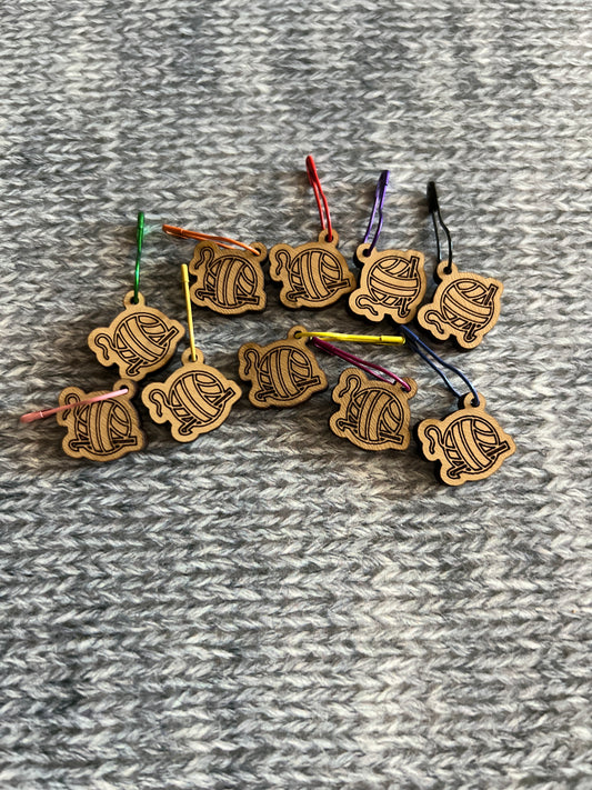 Wood Yarn Ball with Knitting Needles Stitch Marker Set