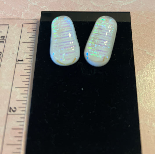 Fused glass earrings - white and silvery blue dichroic on gold tone stud